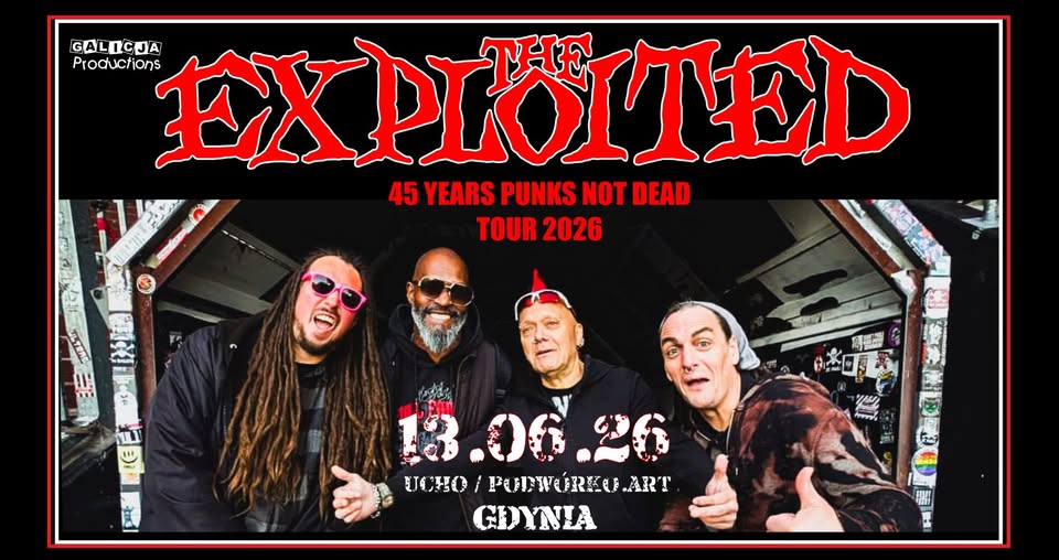 Już 13 czerwca 2026 roku Gdynia stanie się miejscem muzycznego święta dla fanów punk rocka, gdy na scenie Ucho / Podwórko Artystyczne przy ulicy Piotra 2 wystąpi legenda brytyjskiej sceny – The Exploited. Z okazji 45-lecia działalności, zespół wyrusza w trasę koncertową zatytułowaną ’45 Years Punks Not Dead’, która będzie okazją do doświadczenia na żywo energii i pasji, jaką grupa wnosi na scenę od ponad czterech dekad.