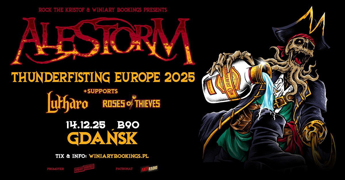 Jeśli kochasz takie zespoły jak Sabaton, Powerwolf czy Turisas; jeśli nie obce Ci są brzmienia folk metalu, power metalu lub heavy metalu; jeśli nie boisz się dobrej zabawy połączonej z dawką solidnej muzycznej energii – ta trasa jest dla Ciebie! Alestorm bowiem to nie tylko muzyka – to prawdziwe metalowe widowisko pełne humoru, szant i opowieści o morzu. A wspomagają ich na tym odważni koledzy z Lutharo oraz nowoczesne brzmienia Roses of Thieves.
