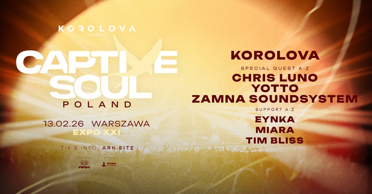 Captive Soul by Korolova to nie tylko nocny set — to kuratorska wizja, która łączy znane nazwiska sceny melodic techno z produkcją na poziomie festiwalowym. Jeśli szukasz wydarzenia, które zaoferuje pełne spektrum emocji — od medytacyjnych, ambientowych przystanków do eksplozji tanecznej energii — te dwie halowe noce w Warszawie i we Wrocławiu powinny znaleźć się w Twoim kalendarzu. To zaproszenie do zanurzenia się w brzmieniu, które w swojej najlepszej formie potrafi poruszyć zarówno ciało, jak i wyobraźnię. Dive into the sound with us.