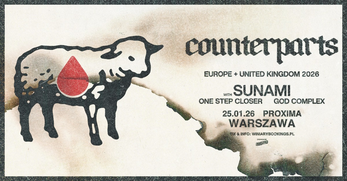 Na polskiej scenie koncertowej już na początku 2026 roku pojawi się wyjątkowa metalcore’owa petarda, która rozgrzeje serca fanów mocnego grania i emocjonalnej szczerości. Kanadyjska formacja Counterparts, znana z niesamowitej intensywności i melodycznego pazura, wraca do Warszawy! Tym razem nie przyjdzie sama – na scenie warszawskiego klubu Proxima 25 stycznia pojawią się także legendarni przedstawiciele amerykańskiej i brytyjskiej sceny hardcore i metalcore: Sunami, One Step Closer oraz God Complex. To będzie wieczór pełen agresji, brutalnej energii i emocjonalnych zrywów – spotkanie, którego fani gatunku nie mogą przegapić!
