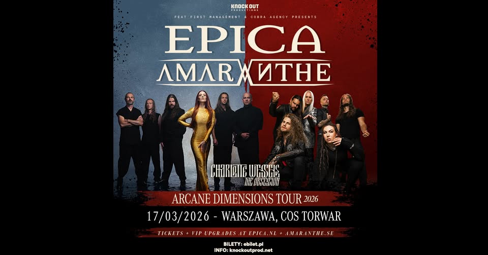 Już 17 marca 2026 roku warszawski Torwar stanie się miejscem niezwykłego muzycznego wydarzenia, które z pewnością na długo zapisze się w pamięci fanów mocnych brzmień i artystycznej różnorodności. Na scenie wystąpią trzy wyjątkowe zespoły: holenderska grupa symfonicznego metalu Epica, szwedzki projekt pop-metalowy Amaranthe oraz holenderska wokalistka Charlotte Wessels, prezentująca szeroki wachlarz brzmień od alternatywy po symfoniczne pejzaże.