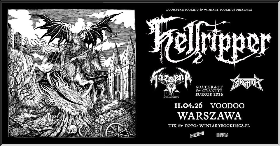 Podczas polskiej trasy, Hellripper będzie towarzyszył support w postaci szwedzkiej kapeli Sarcator, która od lat rozwija blackthrashowe brzmienia, czerpiąc inspiracje z takich legend jak Sarcófago i Kreator. Ich najnowszy album „Swarming Angels & Flies”, wydany w styczniu 2026 roku, to mocny głos młodej fali skandynawskiego death i black metalu.