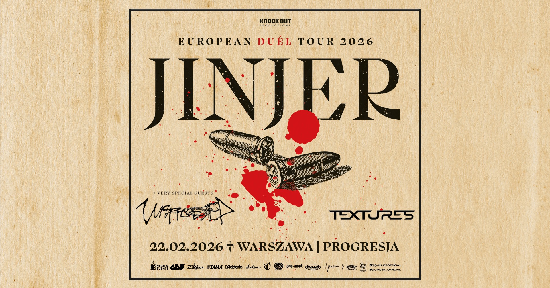 nd22lut17:00nd22:00Jinjer + Unprocessed, Textures / 22 II 2026 / Warszawa