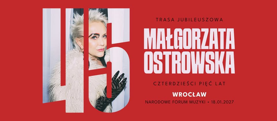 Już 18 stycznia 2027 roku we Wrocławiu, w prestiżowym Narodowym Forum Muzyki, odbędzie się wyjątkowe wydarzenie muzyczne – jubileuszowy koncert Małgorzaty Ostrowskiej z okazji 45-lecia jej działalności artystycznej. Ta ikona polskiej sceny rockowej, znana z charakterystycznego głosu i nieustępliwego stylu, zaprezentuje fanom swoją niezwykłą drogę artystyczną, obejmującą wszystkie etapy jej kariery.