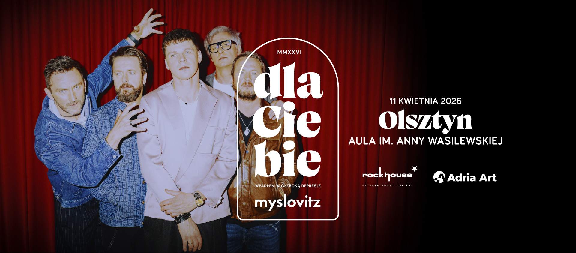 Wiosna 2026: Myslovitz rusza w trasę „Dla Ciebie (wpadłem w głęboką depresję)”. Tytuł trasy brzmi jak deklaracja – osobista, prowokująca, na granicy żartu i traumy – i to właśnie takie połączenie melancholii z chłodnym dźwiękowym kunsztem od lat wpisane jest w identyfikację zespołu. Zapowiedziana na wiosnę trasa ma być czymś więcej niż serią koncertów: ma to być przejazd rollercoasterem emocji i brzmień, który dotknie najczulszych punktów zarówno wiernych fanów, jak i tych, którzy do Myslovitz dopiero wracają.