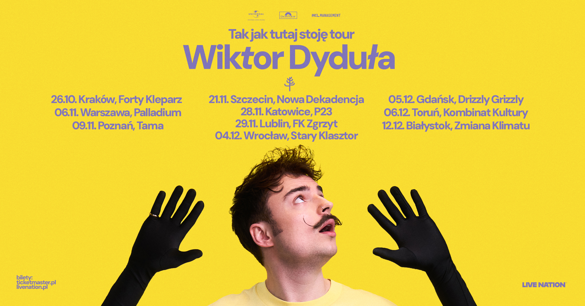 Bilety na trasę „Tak jak tutaj stoję Tour” dostępne są już teraz na platformie www.LiveNation.pl – to zdecydowanie wydarzenie warte odnotowania na mapie koncertowej końcówki 2025 roku. Wiktor Dyduła udowadnia, że pochodzenie z telewizyjnego talent show to tylko trampolina do wyższych lotów. Jego sukcesy pokazują ścieżkę młodego artysty, który dzięki determinacji i niesłabnącej pasji tworzy muzykę autentyczną i trwałą.